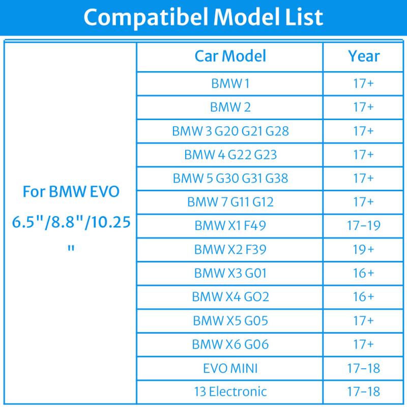 Этот беспроводной адаптер CarPlay совместим с Apple CarPlay и Android Auto, а большой экран системы BMW EVO размером 6,5/8,8/10,25 дюйма обеспечивает более удобный просмотр.